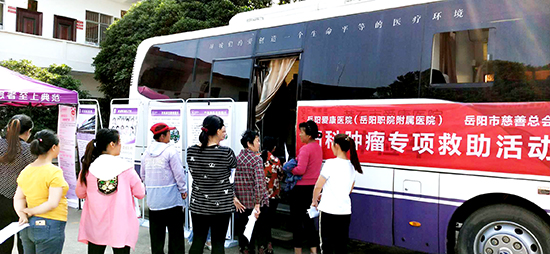 為弘揚(yáng)慈善精神,關(guān)愛(ài)貧困女性,近期,市慈善總會(huì)與岳陽(yáng)愛(ài)康醫(yī)院開(kāi)展的“關(guān)愛(ài)女性健康”慈善活動(dòng)正在岳陽(yáng)縣火熱進(jìn)行中。此次慈善活動(dòng)由岳陽(yáng)愛(ài)康醫(yī)院針對(duì)岳陽(yáng)縣區(qū)域的女性進(jìn)行免費(fèi)篩查,對(duì)在該院治療卵巢囊腫、子宮肌瘤、宮頸癌等疾病的貧困女性給予醫(yī)療費(fèi)用減免救助。