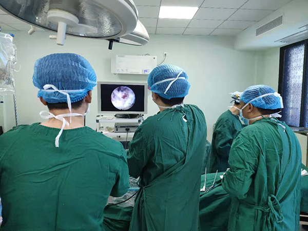10月底,岳陽愛康醫(yī)院骨科主任劉鴻程為該患者進行經(jīng)皮椎間孔鏡髓核摘除術。在局麻下利用穿刺針,經(jīng)病變椎體后外側(cè)穿刺至椎間孔處,在擴大椎間孔及神經(jīng)根管后,建立了手術微創(chuàng)通道,并通過該單一通道對其突出的腰椎間盤實施了切除?! ?/span>