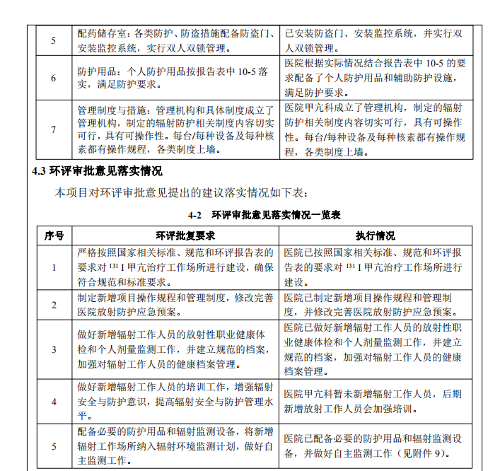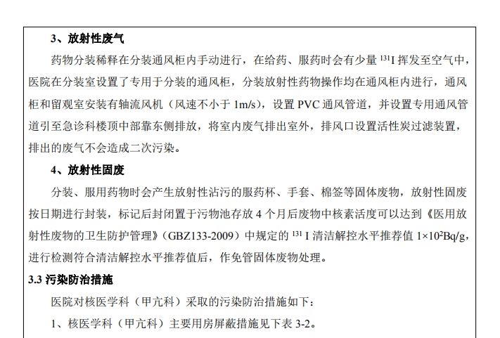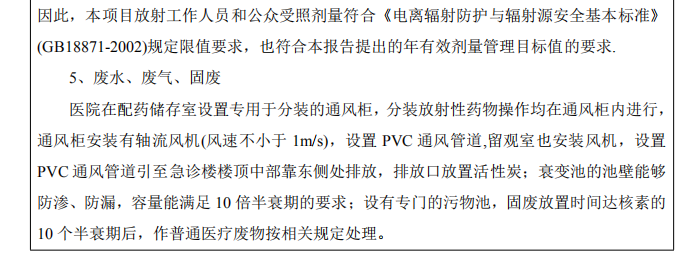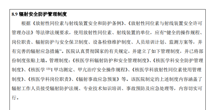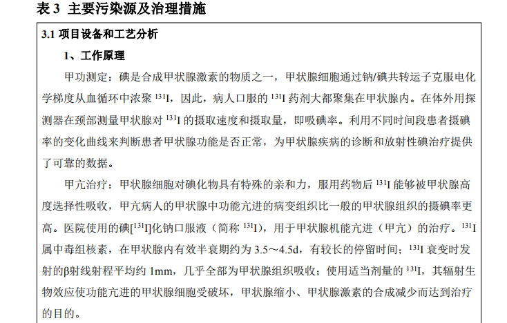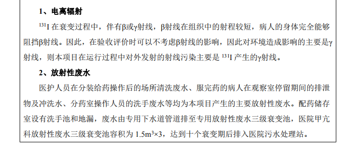 本次驗收為?個?級?密封放射性?作場所,利? 131I 開展甲亢治療,與環(huán)評報告和批復(fù)?致。