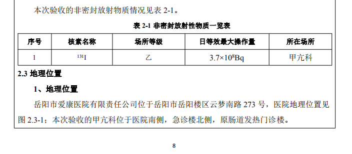 建設(shè)地點位于岳陽市岳陽樓區(qū)云夢南路 273 號岳陽市愛康醫(yī)院甲亢科,主要
