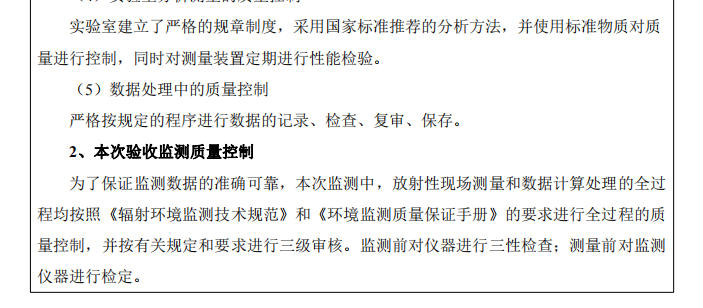 (3)積極配合?態(tài)環(huán)境部?的?常監(jiān)督檢查,采取“?檢”與“委托檢測”相結(jié)合,定期檢查安全防護設(shè)施,保證放射?作場所的各項輻射安全措施能正常運?,保證各安全邊界的輻射?平符合國家標(biāo)準(zhǔn)。