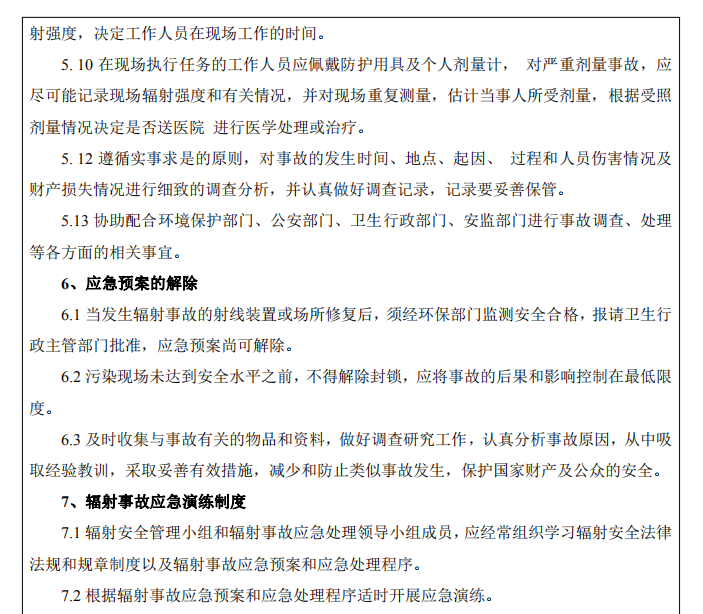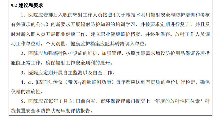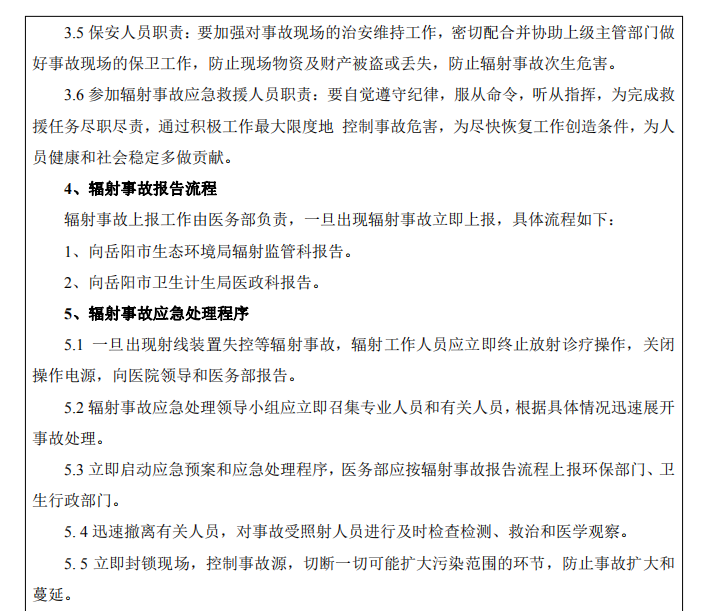 (4)進?步完善輻射事故應(yīng)急處理預(yù)案和輻射防護管理制度。加強放射?作場所的組織管理?作,切實執(zhí)?相關(guān)管理制度及操作規(guī)程,保護放射?作?員。